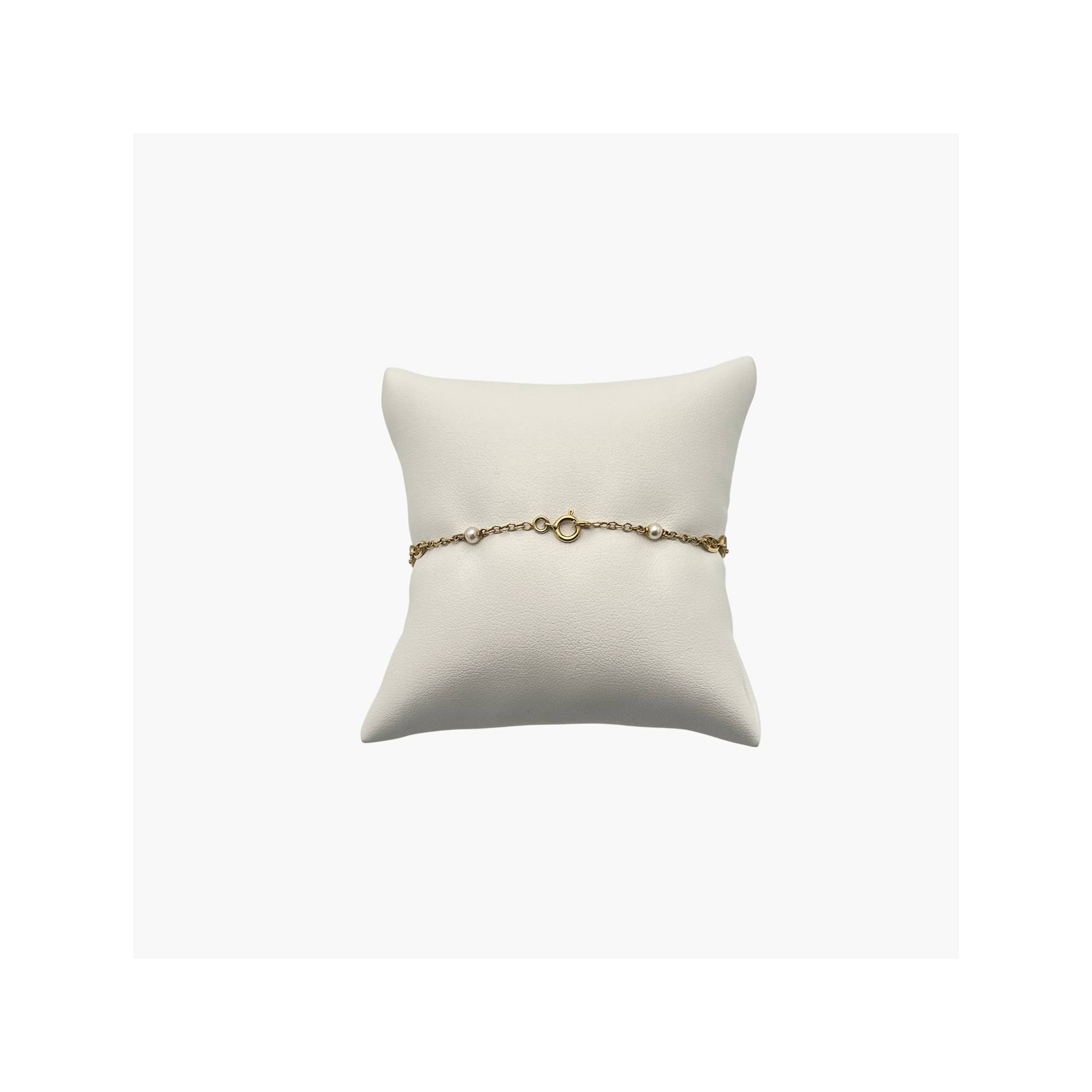 Bracelet délicat en or 750/1000 orné de perles raffinées, alliant élégance intemporelle et finesse. Fabrication française.
