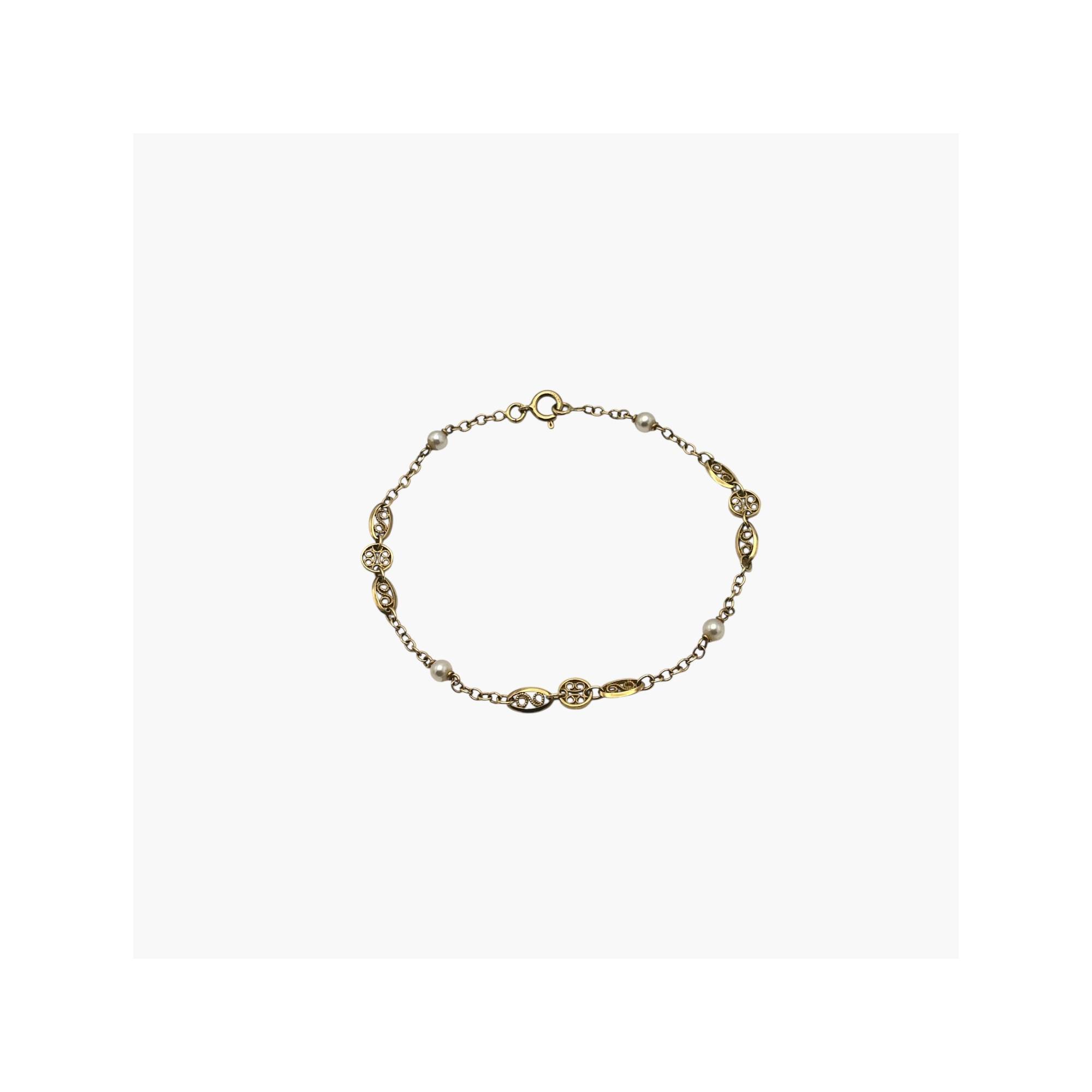 Bracelet filigrane or 750 et perles