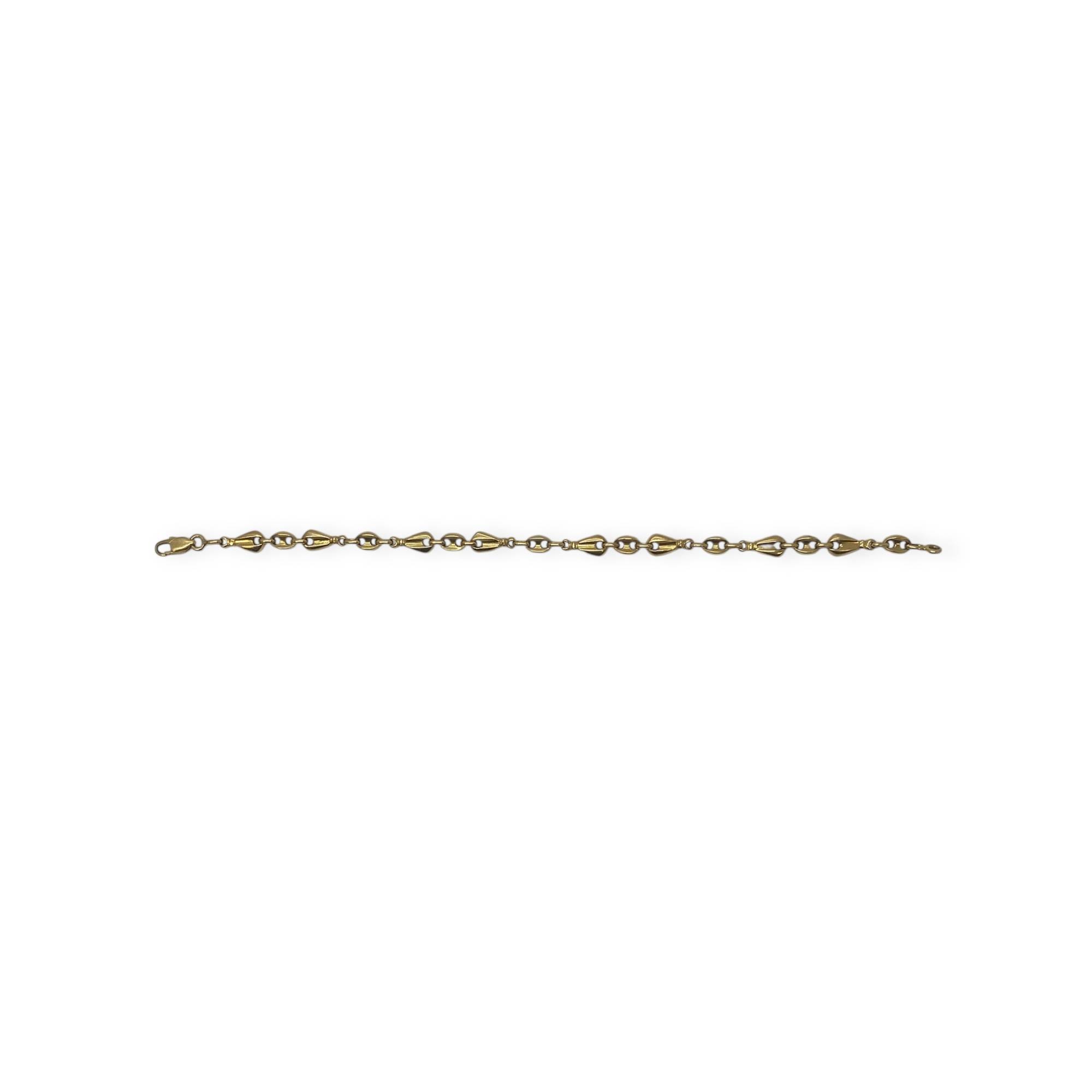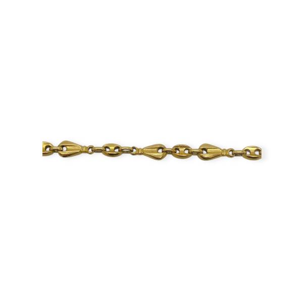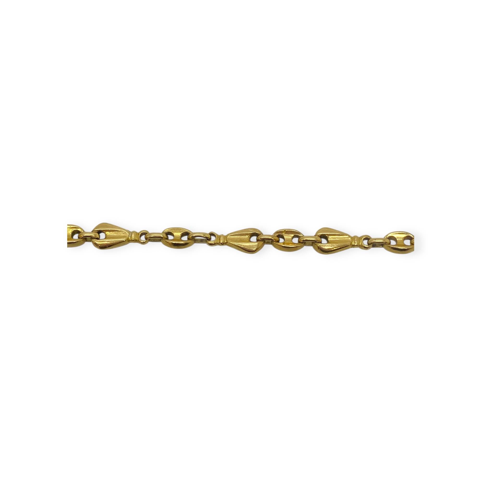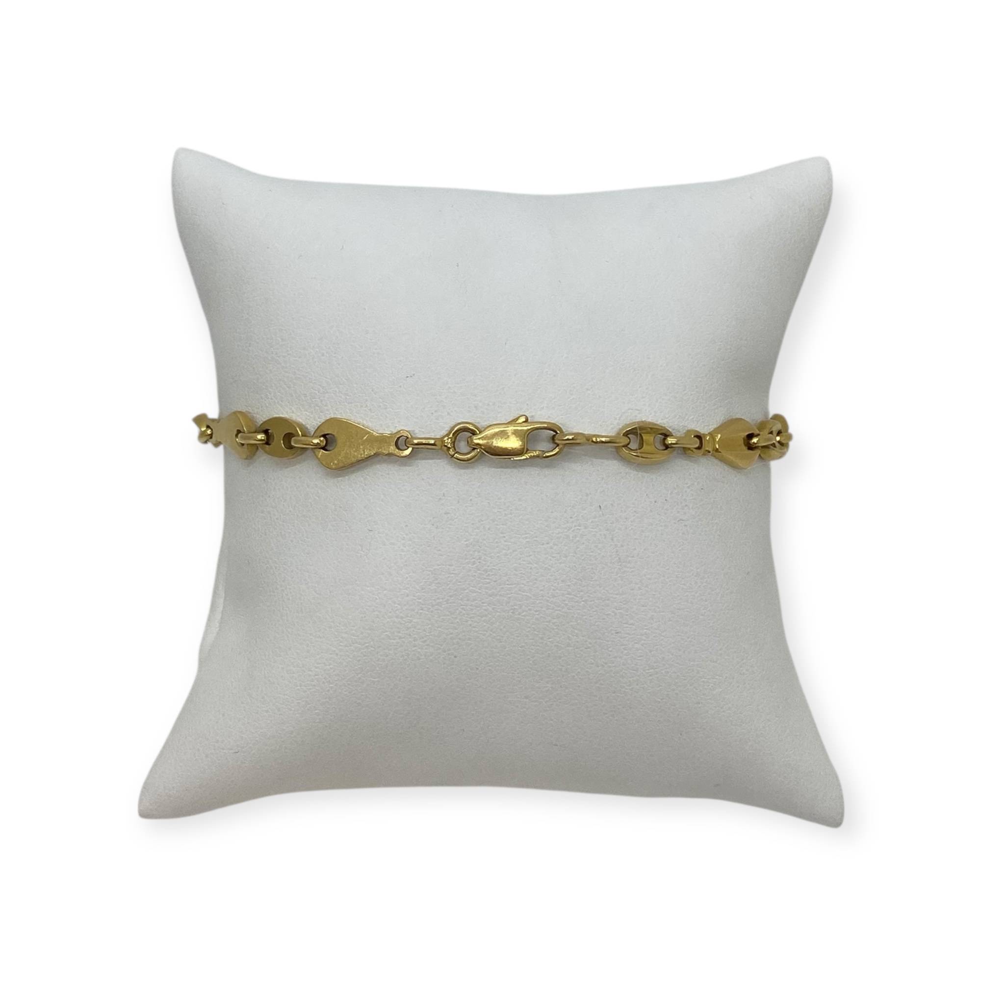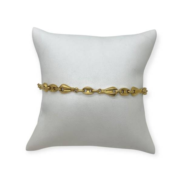 Bracelet en or 750/1000 (18k), composé de maillons grains de café alternés au design original et élégant. Un bijou lumineux, facile à porter au quotidien ou à associer à d’autres bracelets.