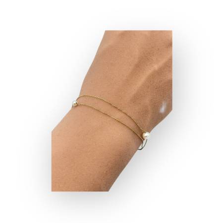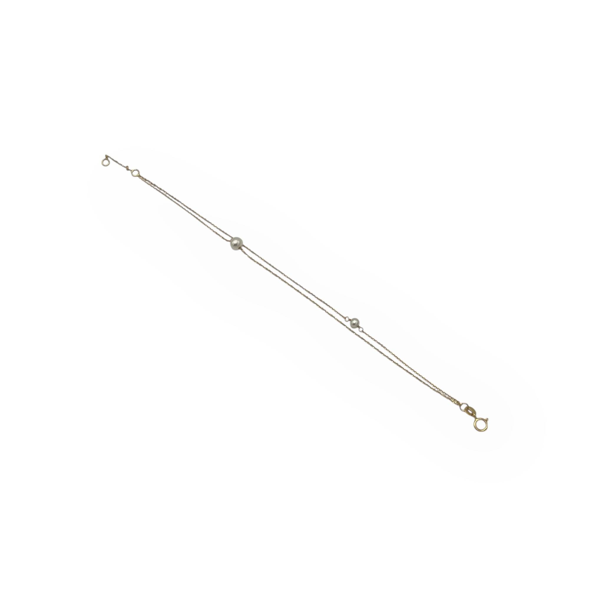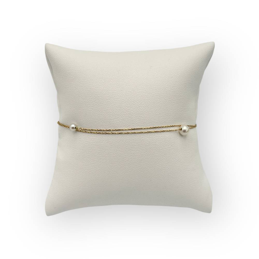 Bracelet en or 750/1000 à double chaîne fine, ponctué de perles de culture, allure légère et féminine.