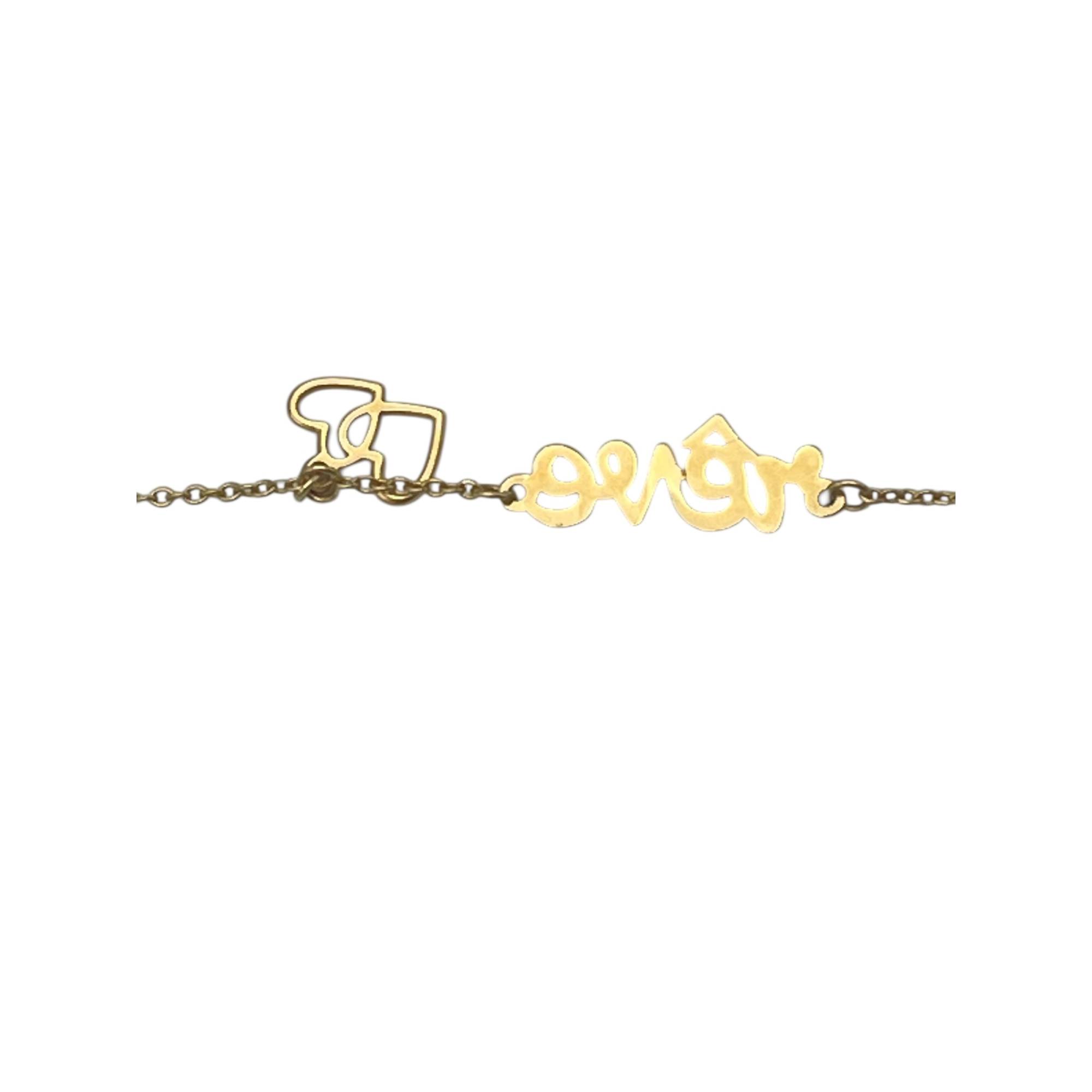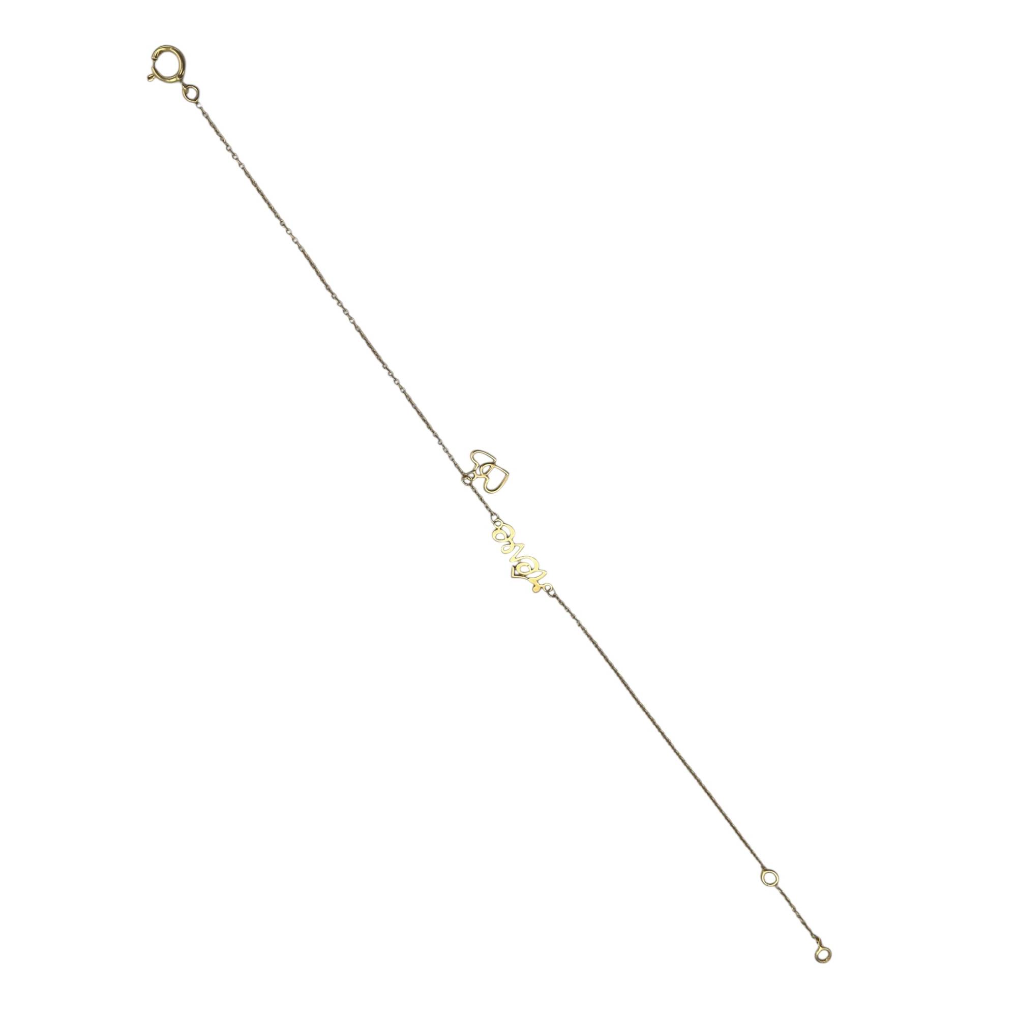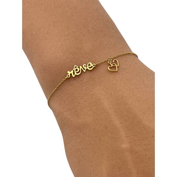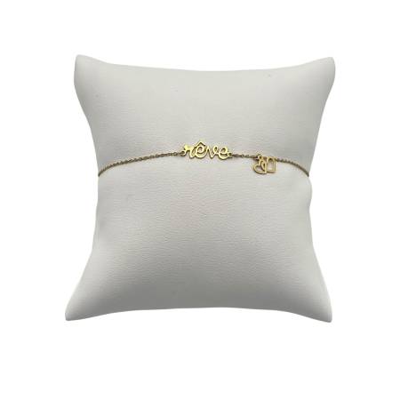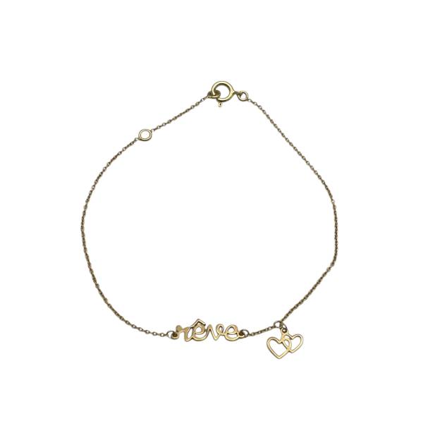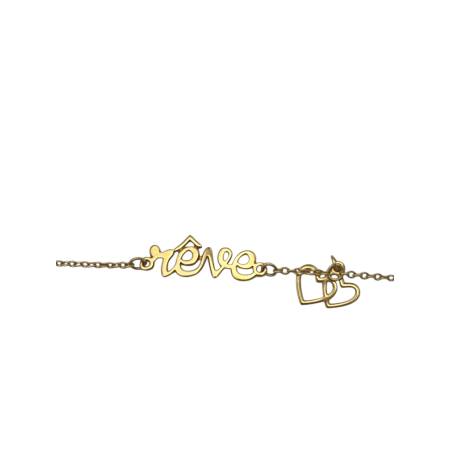 Bracelet en or 750/1000, maille forçat fine, mot « Rêve » ajouré et motif cœur, bijou à message délicat.