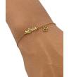 | Longueur x largeur bracelet en cm | : | largeur sur la partie "mot" 5 mm longueur de 17 ou 19 cm grâce à l'anneau de rappel |