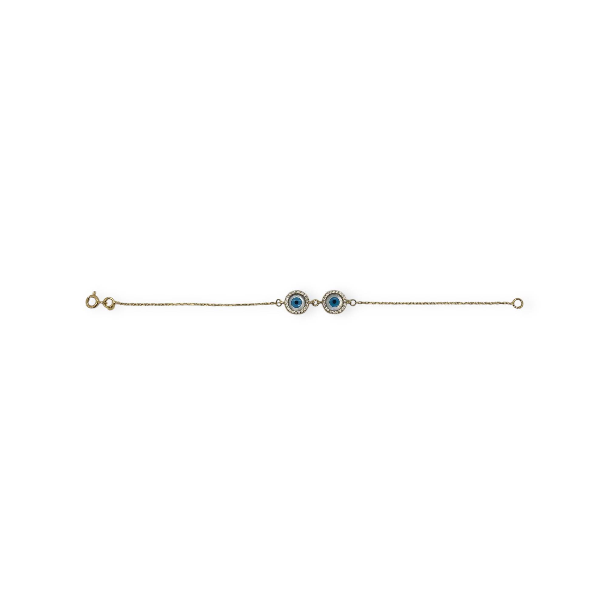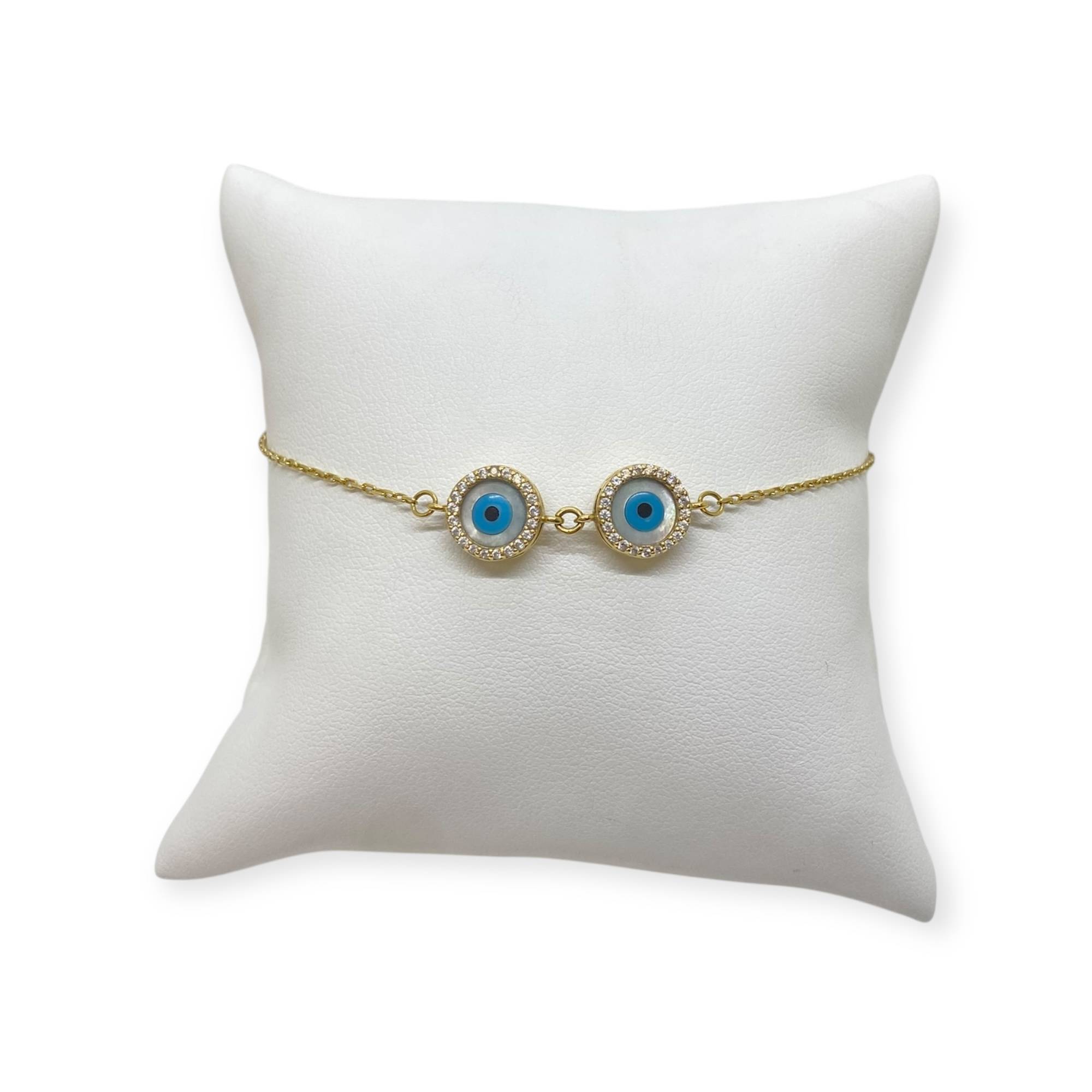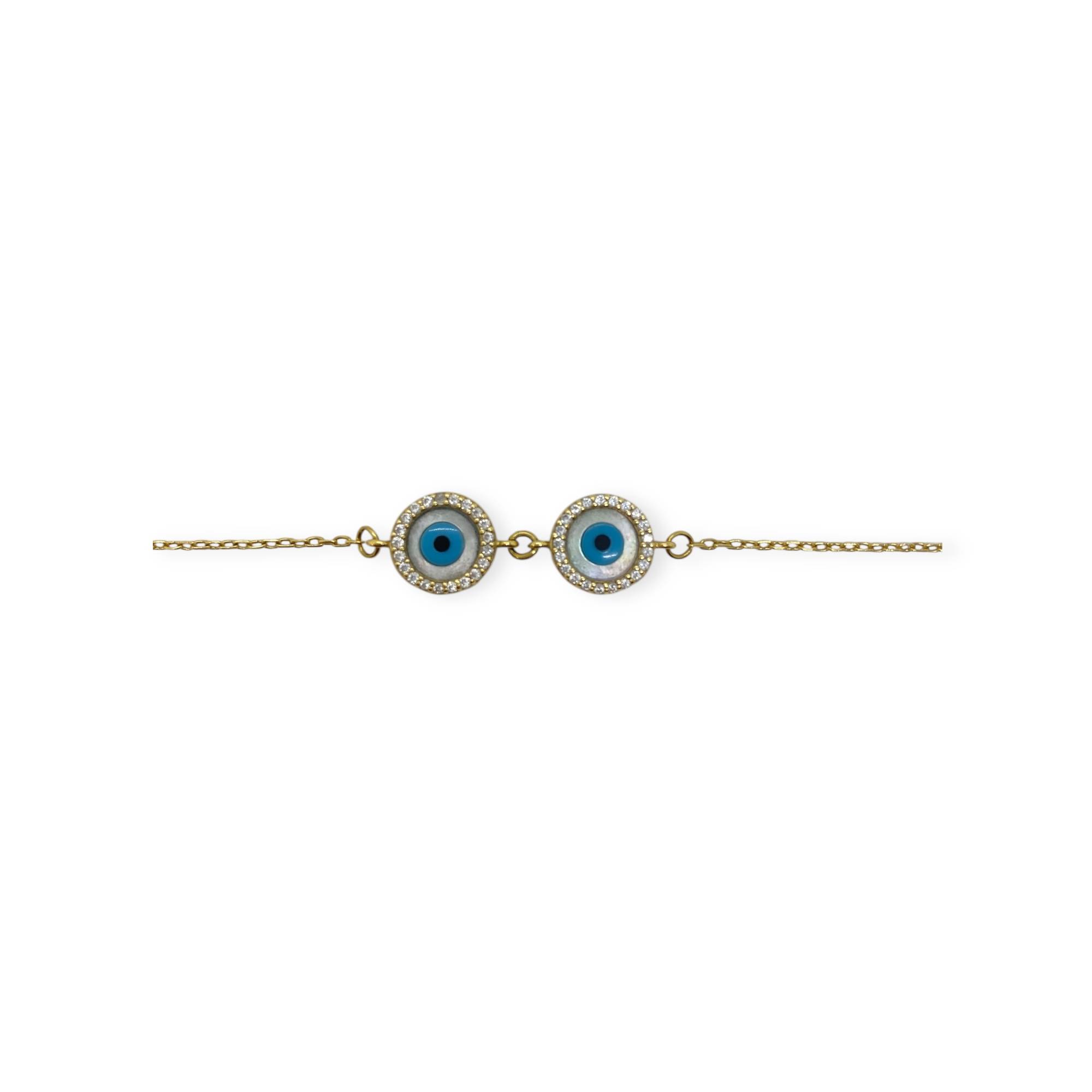 Ravissant bracelet en or 750/1000 (18k) avec des yeux porte-bonheur en nacre entourés d'oxydes de zirconium.