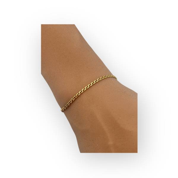 Cette alternance régulière apporte du rythme et une présence équilibrée au poignet. Les maillons polis offrent un éclat franc et lumineux, soulignant la finesse du dessin.