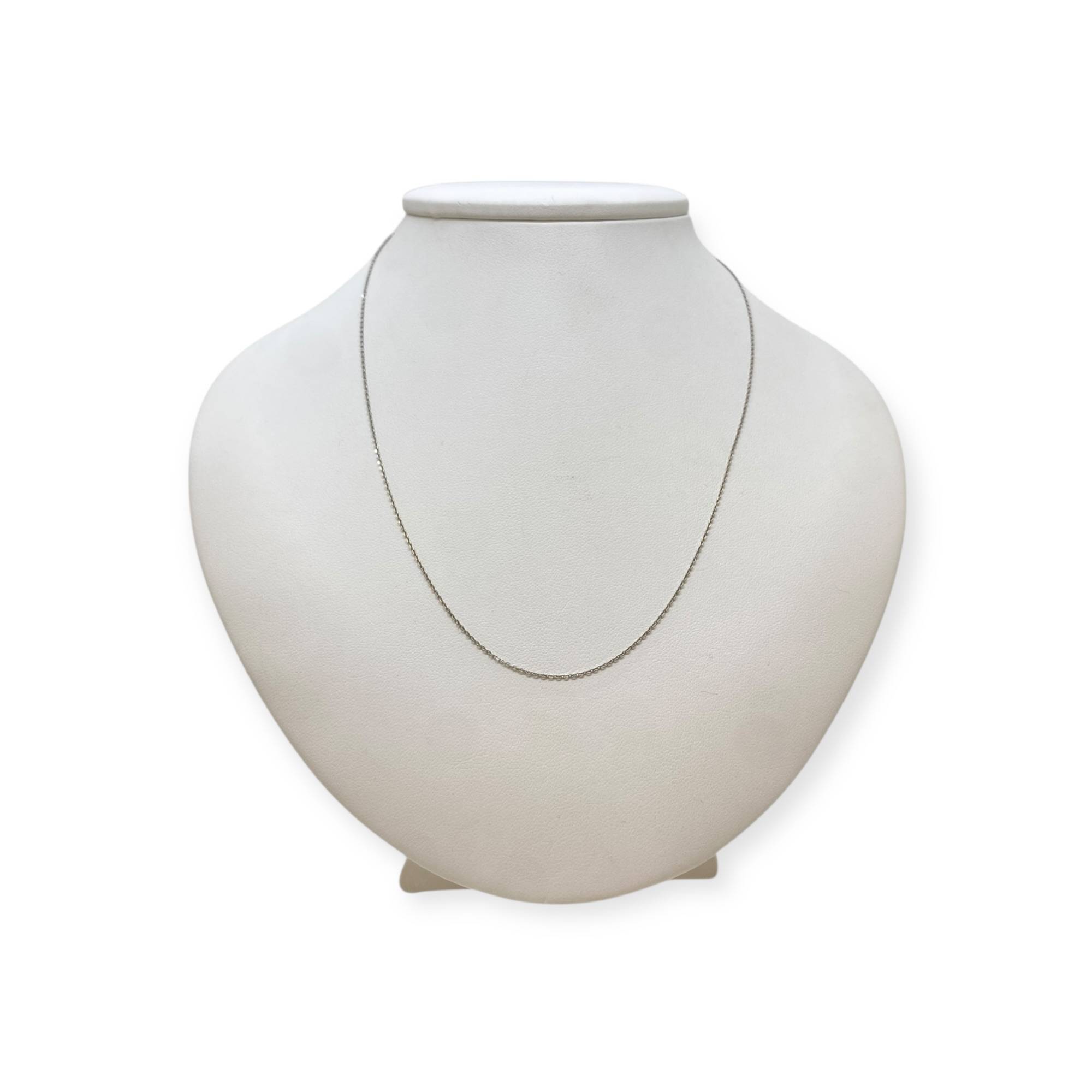 Chaîne en or blanc 375/1000 (9K), à la maille forçat, fine et élégante. Elle est réglable en longueur grâce aux anneaux intermédiaires visibles, permettant d’adapter le porté selon vos envies. une chaîne discrète, idéale à porter seule ou avec un pendentif.