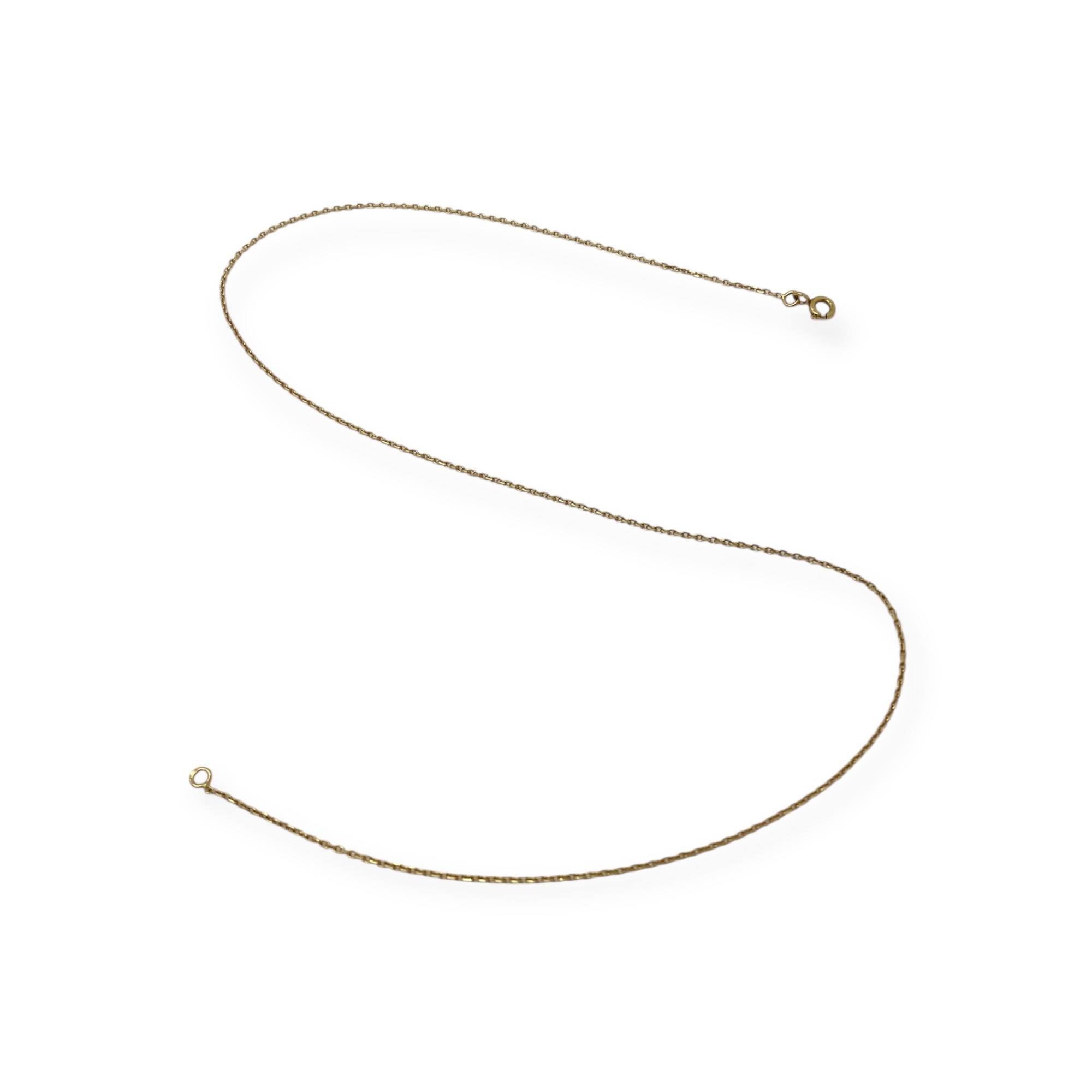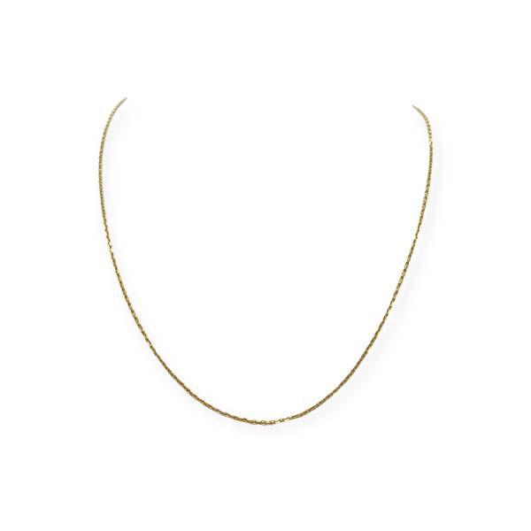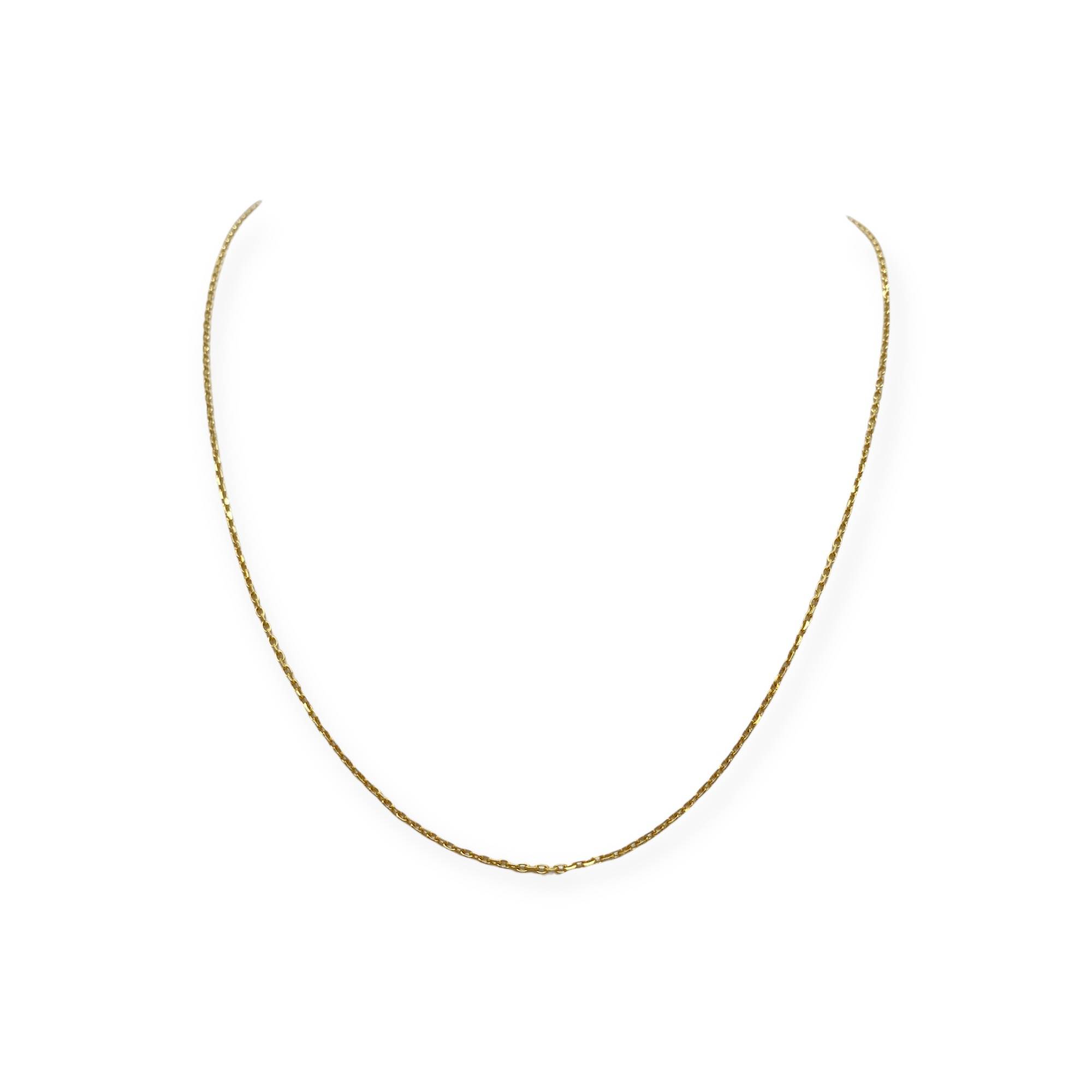 Chaîne en or jaune 750/1000 (18k), réalisée en maille forçat fine et régulière. Un modèle discret et élégant, idéal à porter seul ou avec un pendentif.