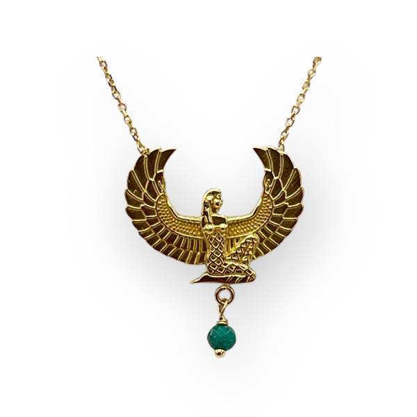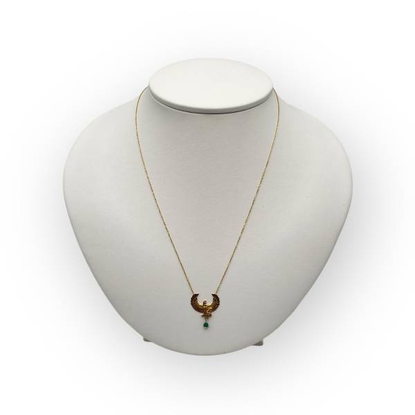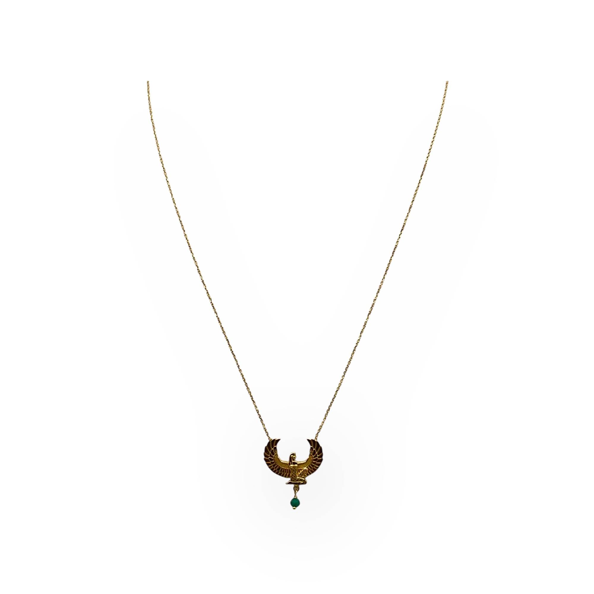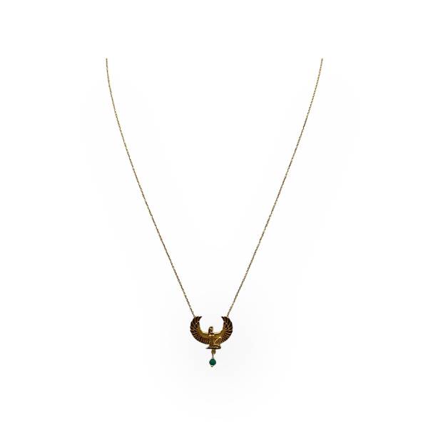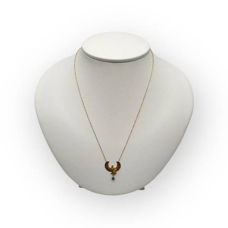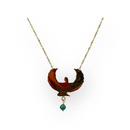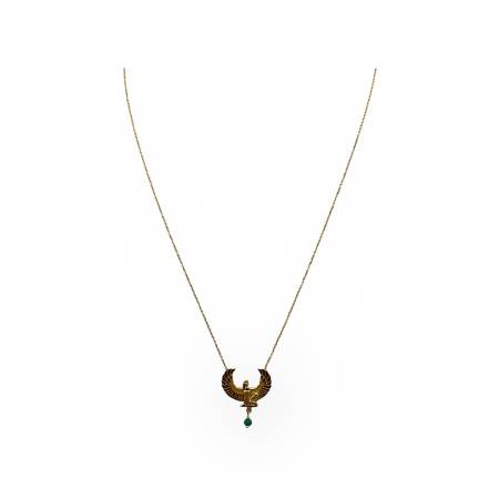 Ce collier est constitué d'une chaîne maille forçat très fine réglable en longueur reliée en son centre à un aigle aux ailes déployées auxquel est rattachée une petite turquoise !