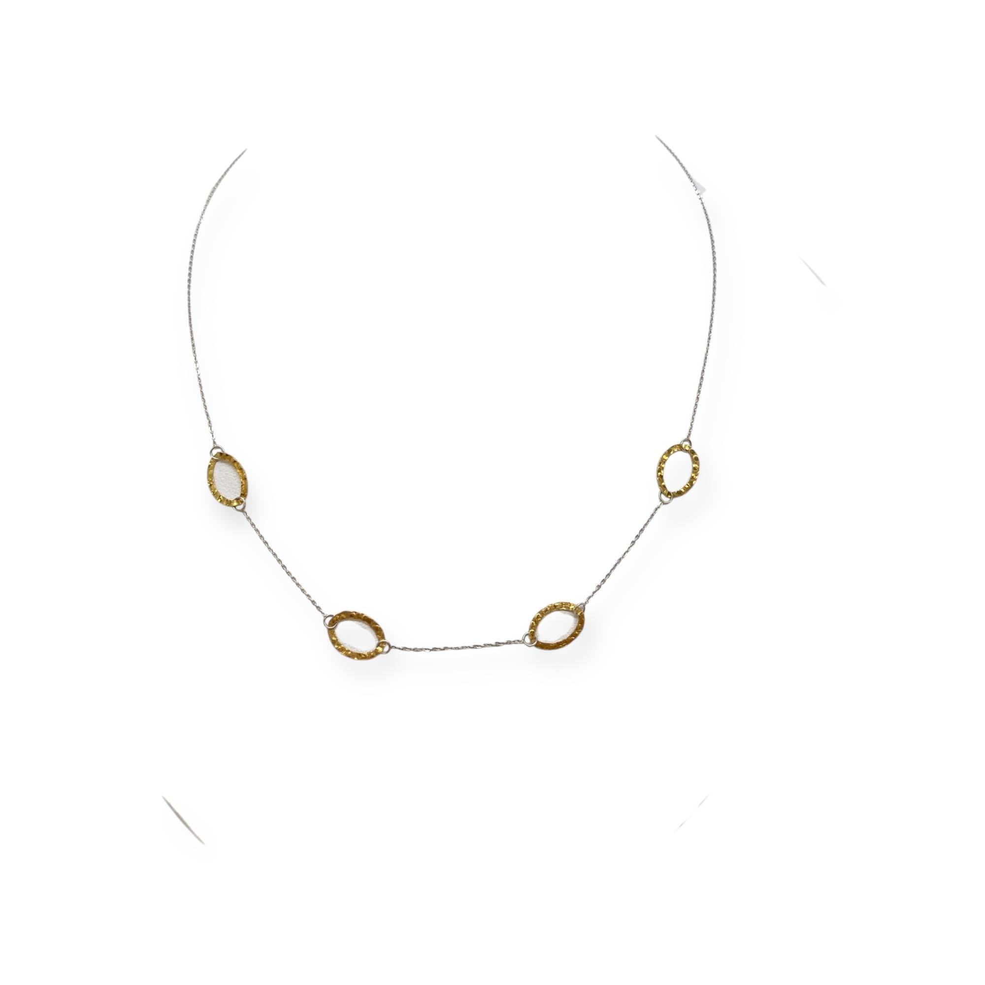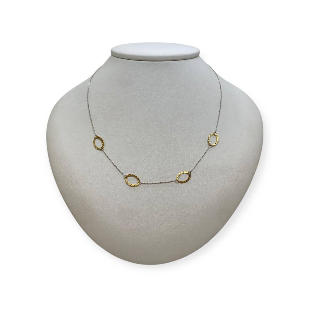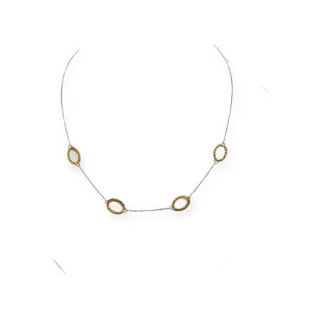 179,00 €Un ravissant collier or blanc en maille forçat or 375/1000 serti de 3 diamants en son centre