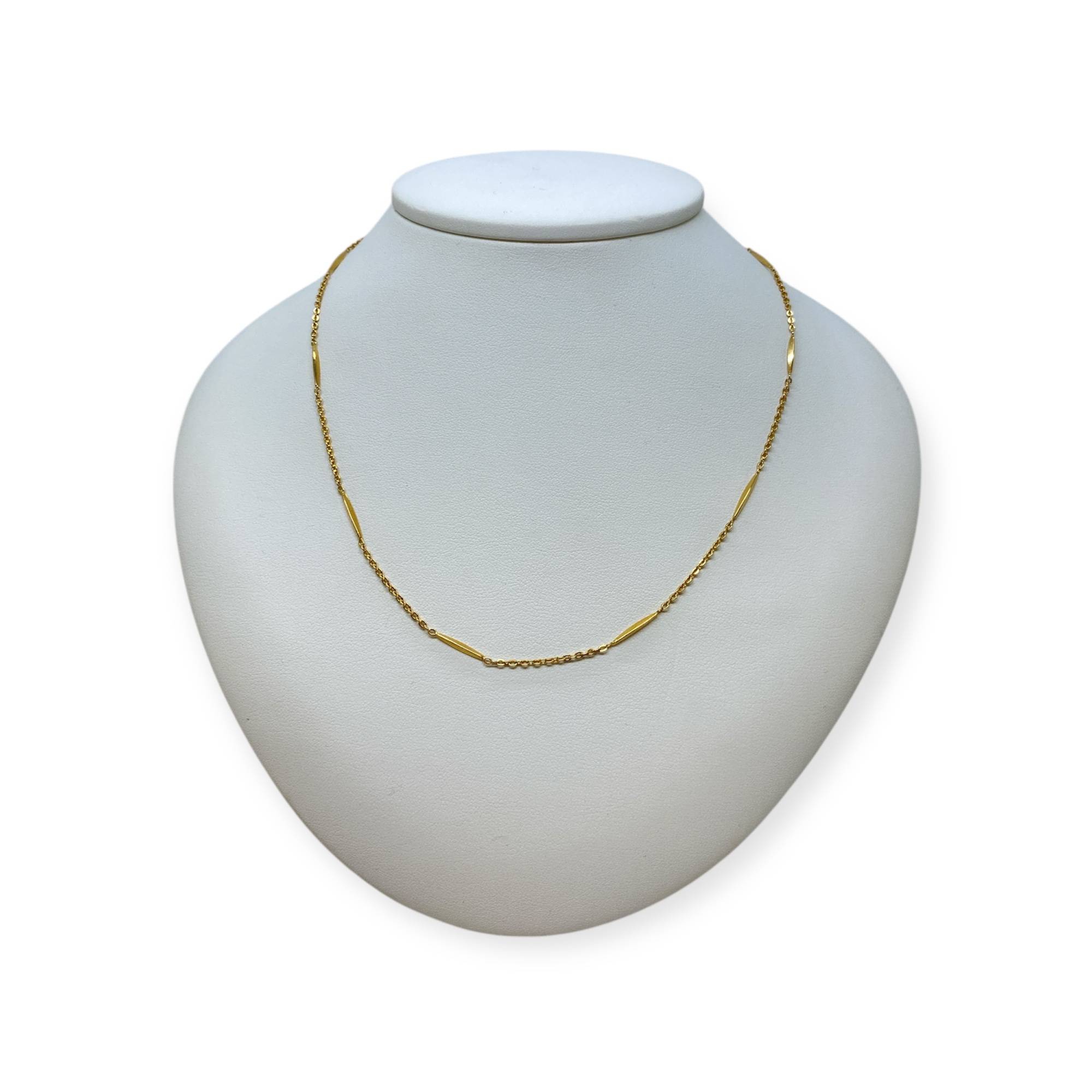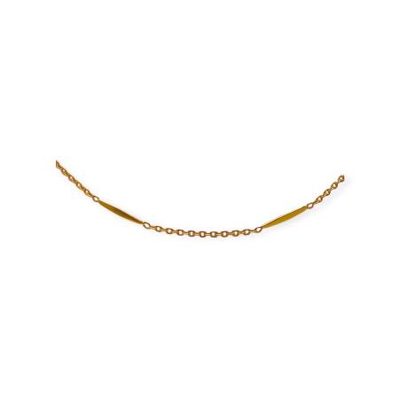 Apportez une touche de finesse et de modernité à votre style avec ce collier en or 18 carats, alliant mailles forçat et segments lisses allongés. Son design minimaliste met en valeur l’éclat naturel de l’or tout en conservant une allure discrète et chic. Léger et raffiné, il se porte aussi bien seul qu’en superposition avec d’autres colliers.