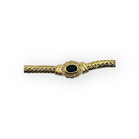1 399,00 €Jonc ovale à ouverture en or jaune 750/1000, serti d’un saphir central entouré de diamants.