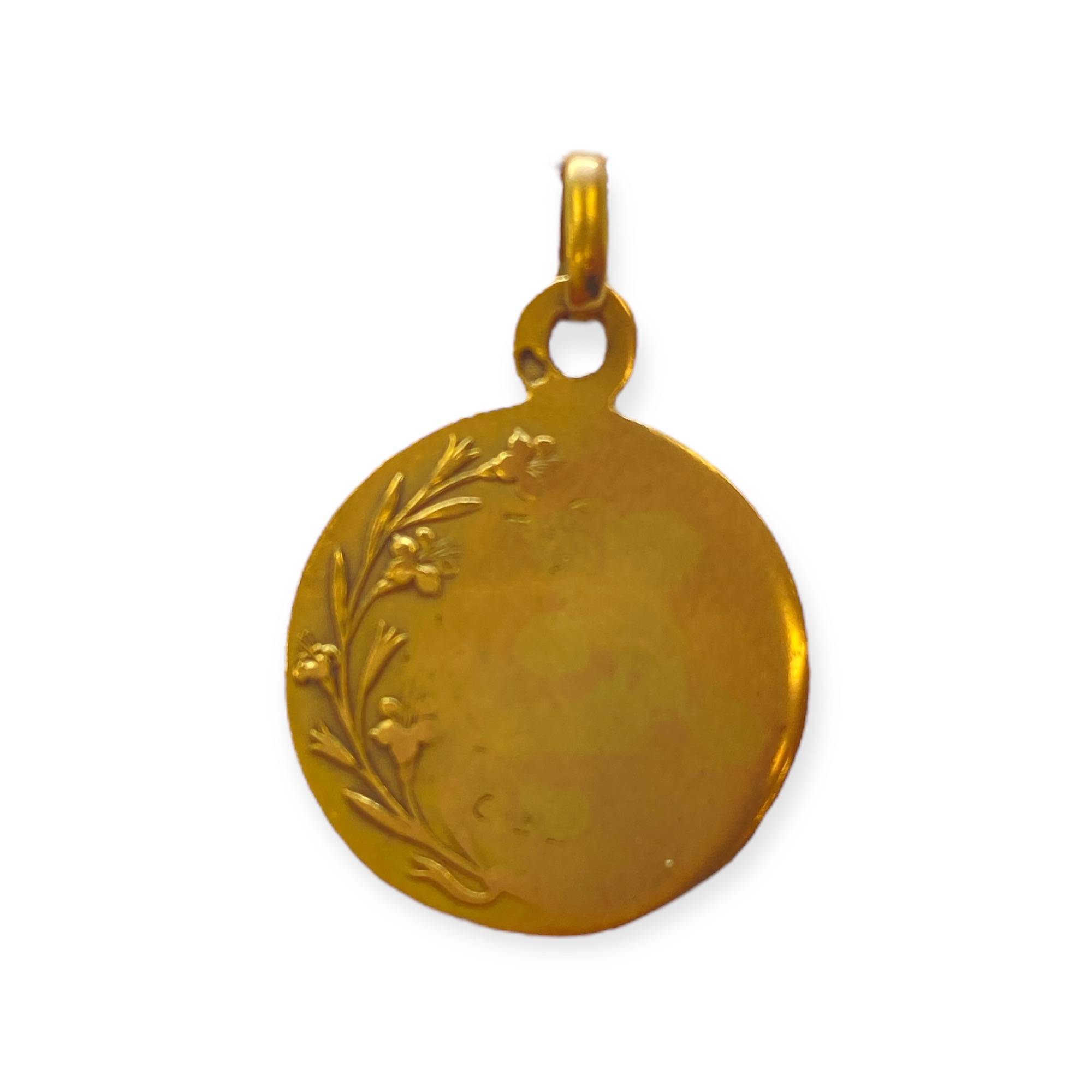 La face avant représente le profil de Jésus avec une auréole, symbolisant la spiritualité et la dévotion. Au dos, un délicat motif floral ajoute une touche élégante et intemporelle. Ce pendentif est idéal pour exprimer sa foi tout en portant un bijou raffiné et discret.