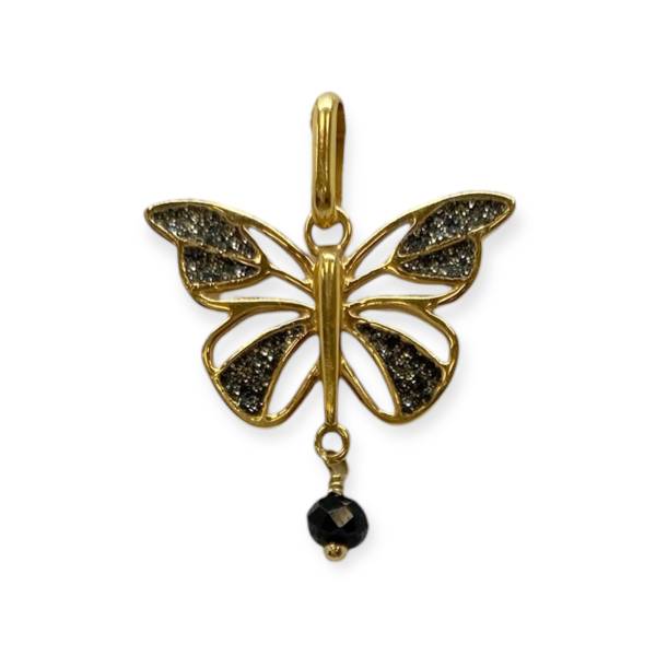 Ravissant pendentif papillon en or 750/1000 avec une pierre noire.