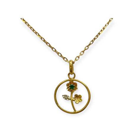 Ravissant pendentif en deux ors 750/1000 (18k) avec une émeraude et un diamant