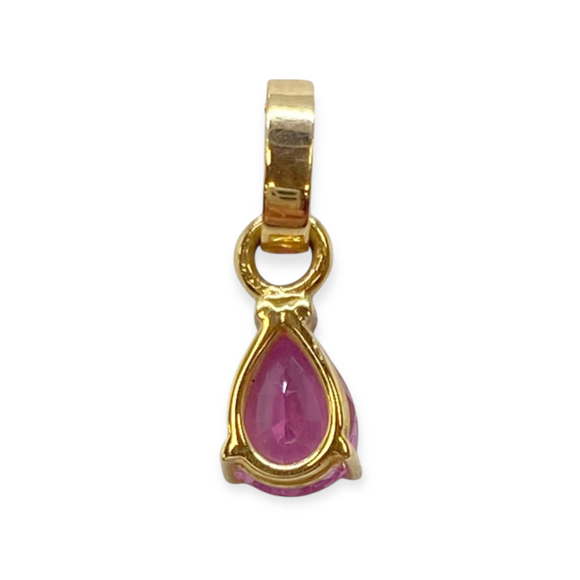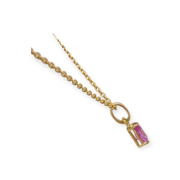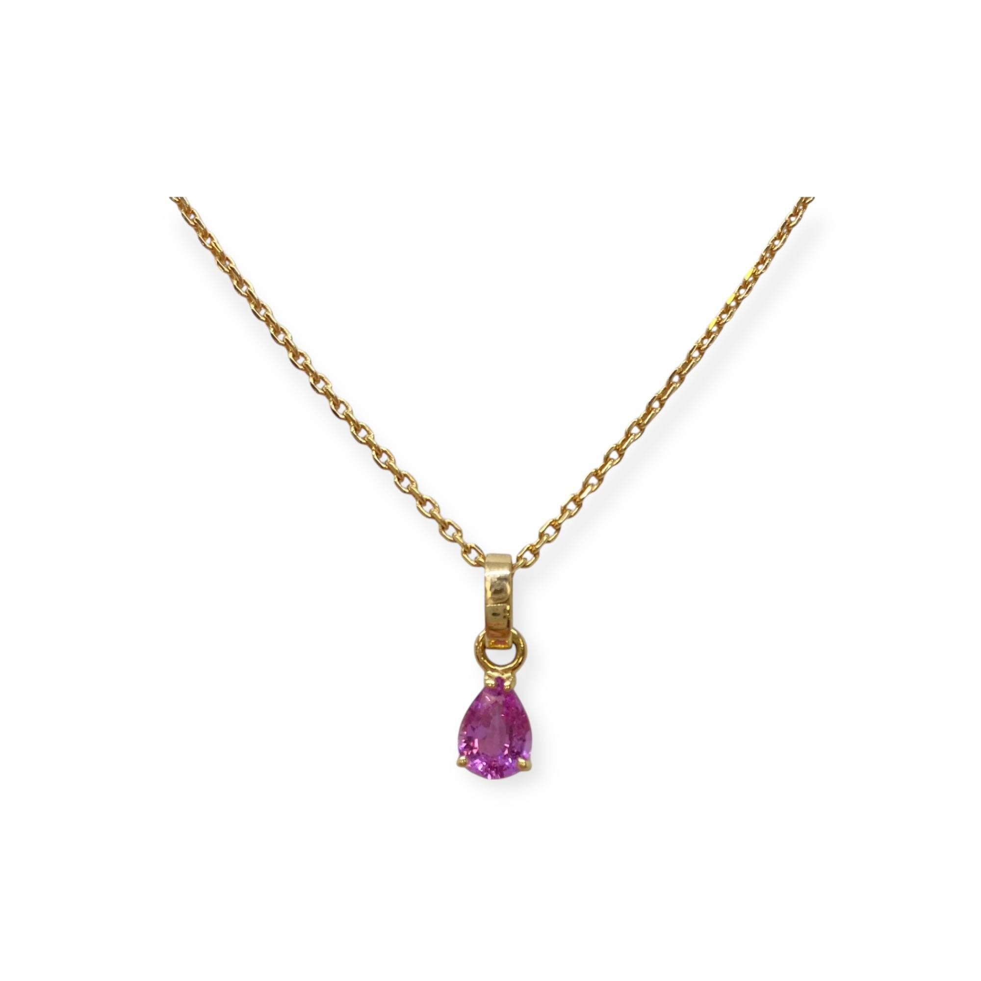 Pendentif en or 750/1000 (18k) serti d’une pierre rose taille poire. Pierre lumineuse et élégante, idéale pour une touche raffinée au quotidien.