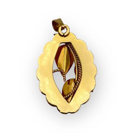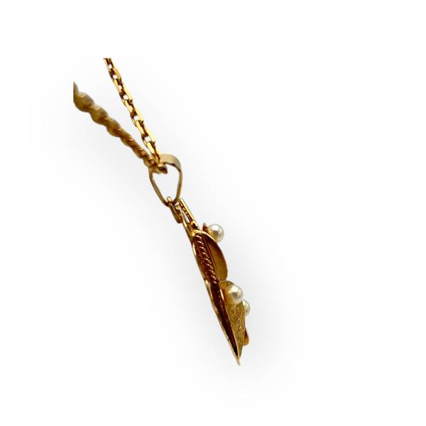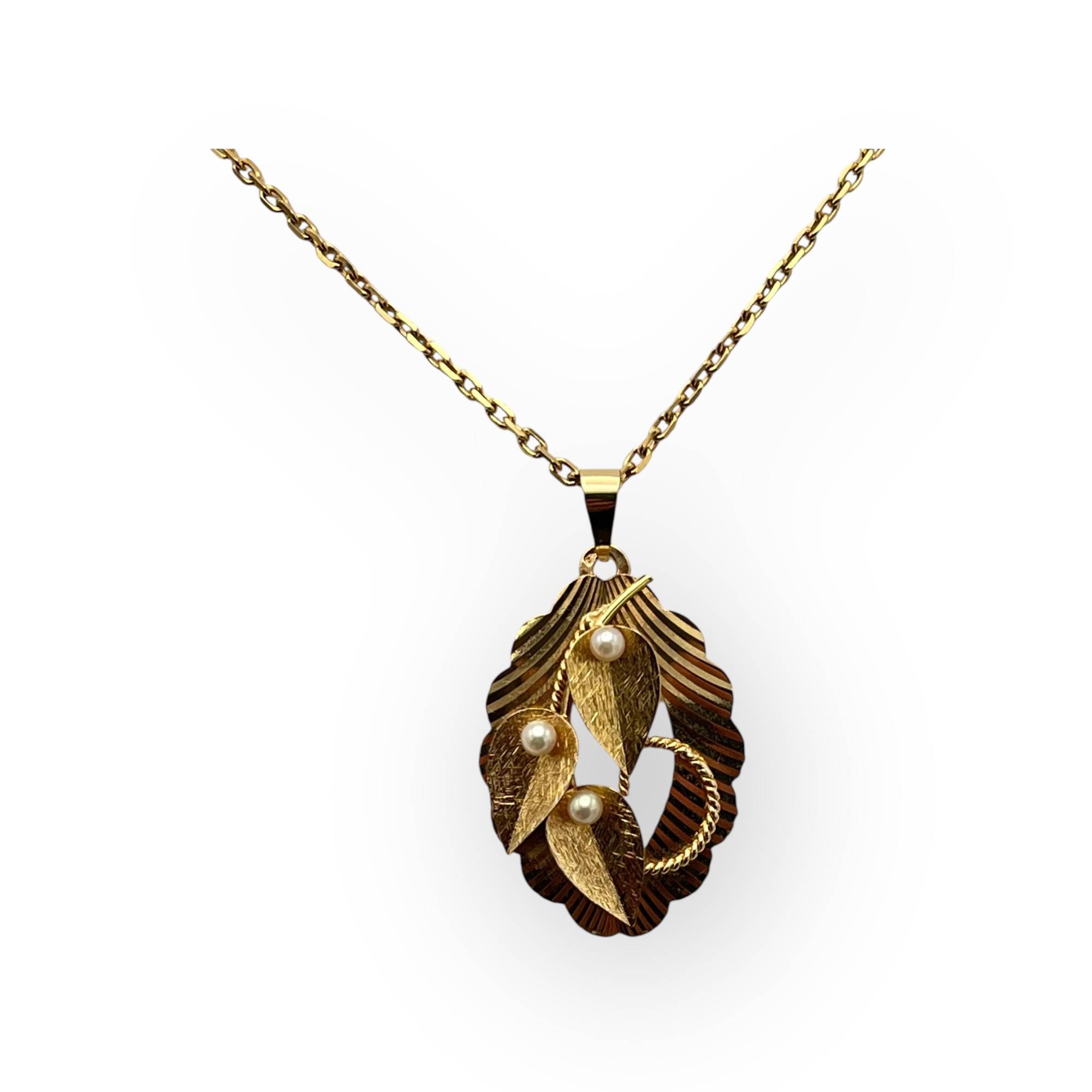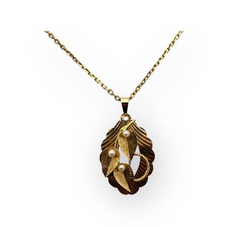 Pendentif en or 750/1000 décor feuillage aux lignes courbes, agrémenté de perles, dans l’esprit Art nouveau