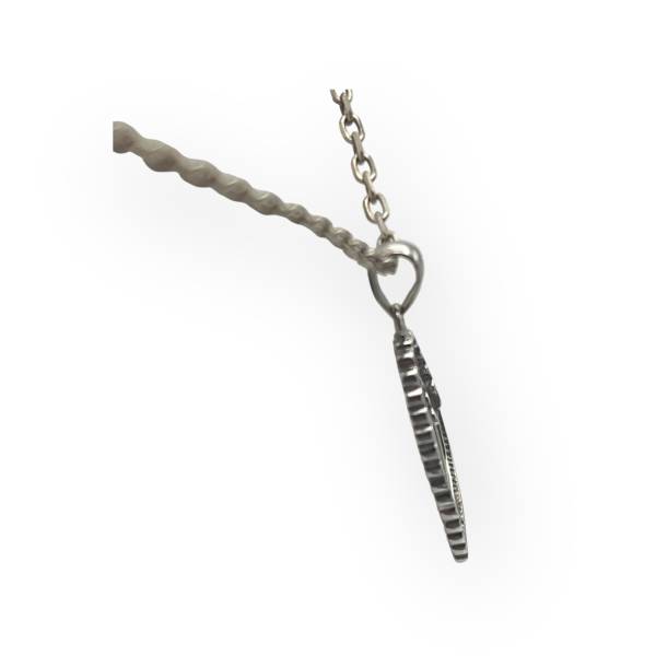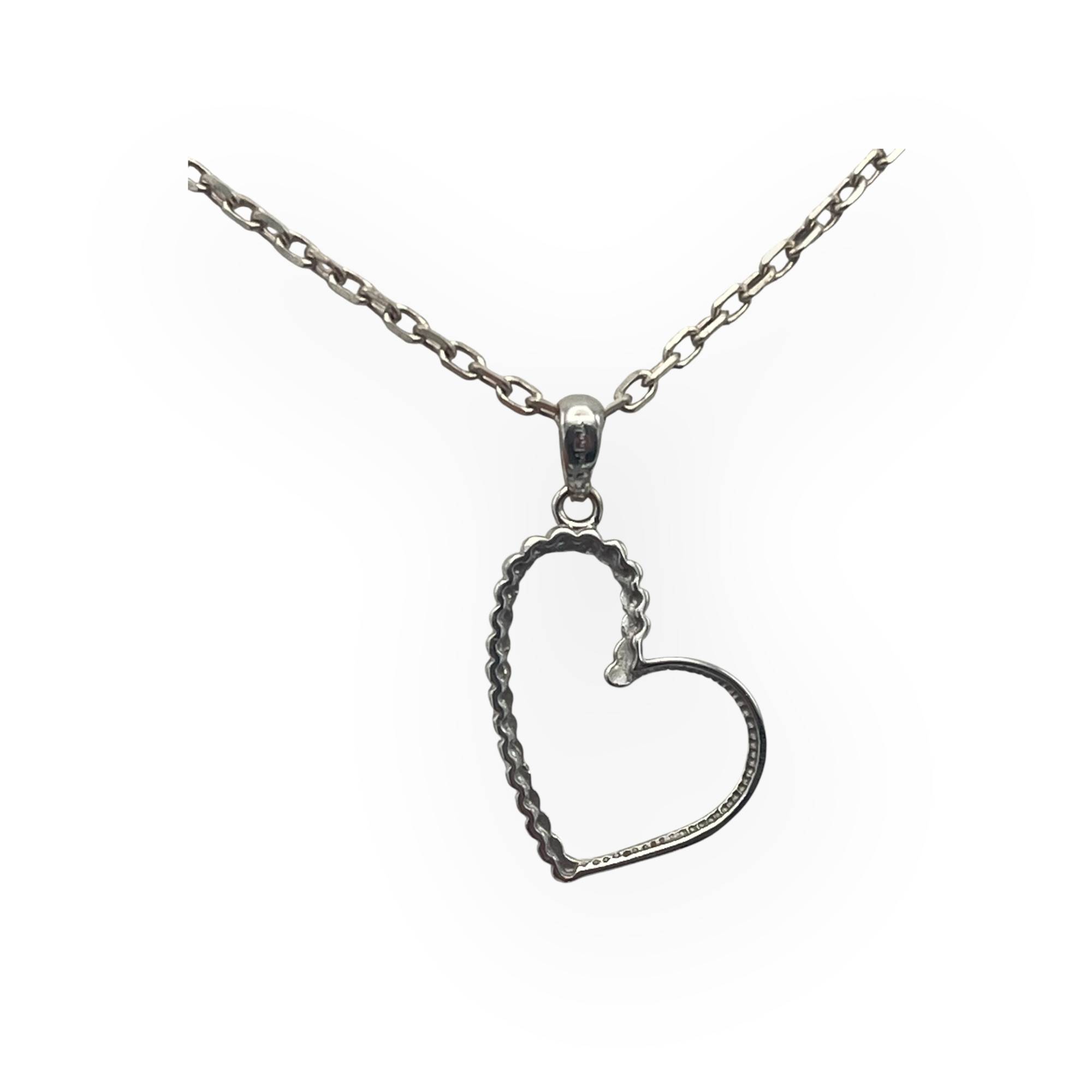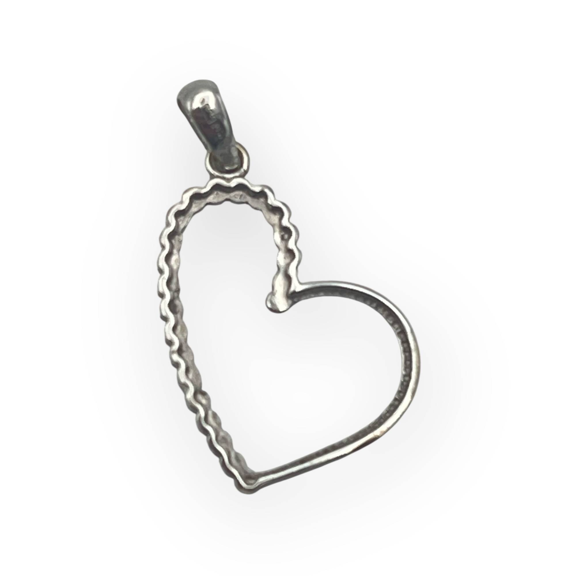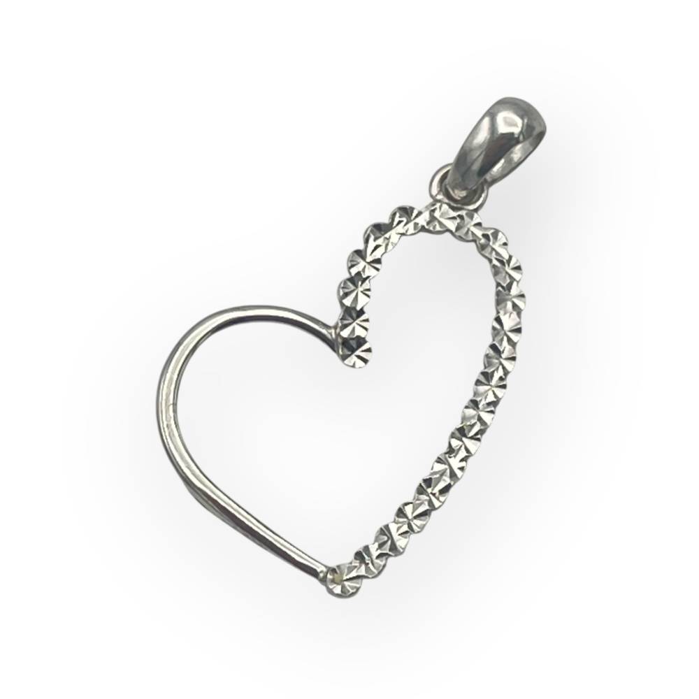Pendentif cœur ajouré en or blanc 750/1000, au design délicatement asymétrique.